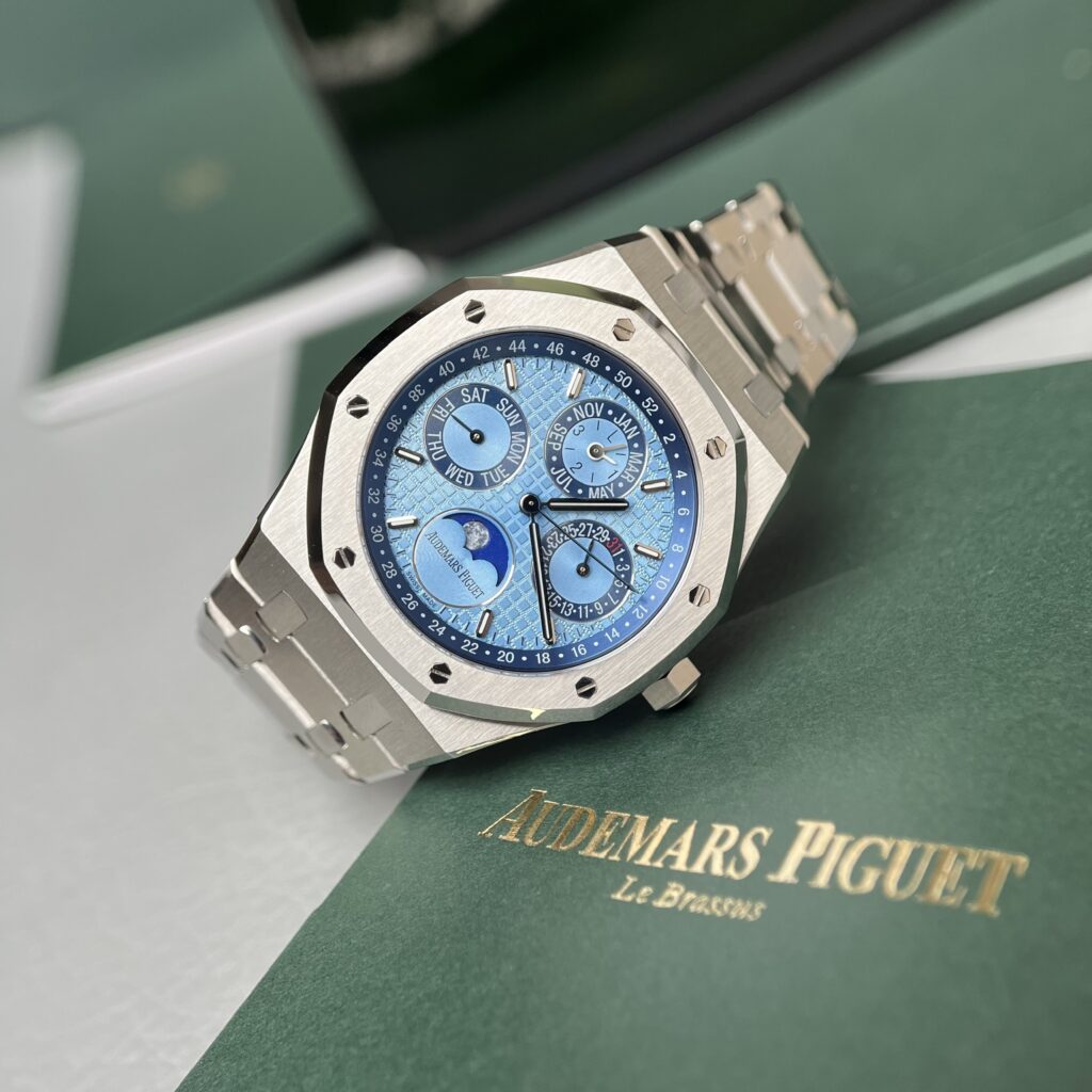 Specification Details Size 41mm Movement Automatic – Super Clone Material Stainless Steel Payment Bank Transfer – Crypto – Webstern Union – Paypal Friends Water Resistance Good Delivery Worldwide Warranty 5 years on the movement Support Free oiling and polishing – Competitive upgrade prices Additional Services Repair – Original parts replacement, Audemars Piguet Royal Oak 26574PT Replica 1:1 Watch Ice Blue Dial 41mm – Replica Luxury
