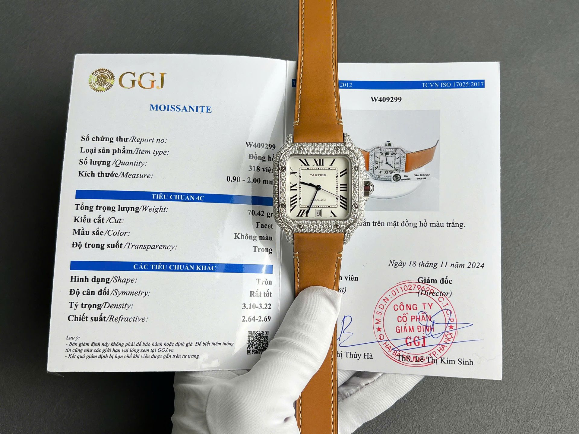 Cartier Santos White Dial Copies Watches Custom Diamonds Moissanite BVF 39.8mm – Replica Luxury
