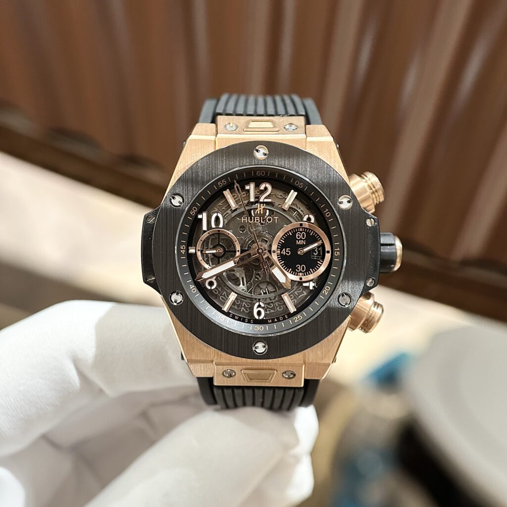 Specification Details Size 44mm Movement Automatic – HUB 1280 Material Stainless Steel Payment Bank Transfer – Crypto – Webstern Union – Paypal Friends Water Resistance Good Delivery Worldwide Warranty 5 years on the movement Support Free oiling and polishing – Competitive upgrade prices Additional Services Repair – Original parts replacement, Hublot Replica 1:1 Watch Big Bang Unico King Gold Demi Black BBF Factory 44mm – Replica Luxury